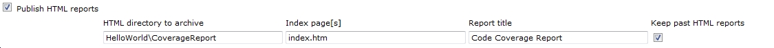 Once you got your environment to build inside Jenkins by running this batch command you can publish the HTML results by selecting the “Publish HTML reports” checkbox and filling in the details as follows:
