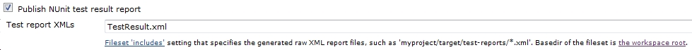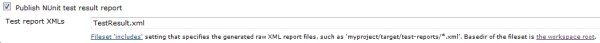 You could run multiple tests by specifying more PATHTOTESTASSEMBLY files. Next you’ll want to configure Jenkins to publish your test results. To do this you should select the “Publish NUnit test result report” checkbox and type in the path to your test results as follows: