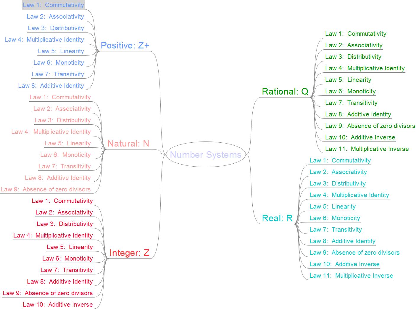 I find Mind Maps as an easy way to view and remember certain things. I don’t use them as often as I should, but in this case I thought it wise to do so seeing that it gives us a very brief and high level overview of the numbers and the laws that pertain to them.